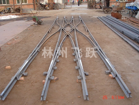 2、把單開道岔的大方向拔好,使道岔處于正確的位置上,與前后線路銜接順直,沒有甩彎和折角。具體為先拔正直股,然后定好支距,后通過軌距定好其他股。